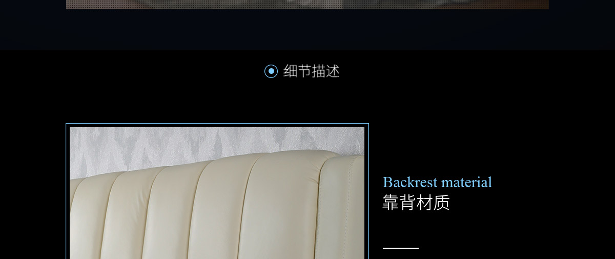 靠背材質(zhì):黃牛頭層牛皮靠背填充物:高密度環(huán)保定型回彈海綿