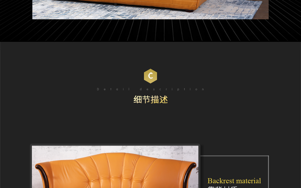 靠背材質(zhì):黃牛頭層牛皮靠背填充物:高密度環(huán)保定型回彈海綿