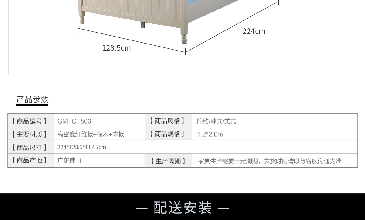 名稱:臥室簡(jiǎn)約韓式田園浪漫板式床803