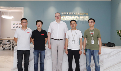 7月15日,德國膠王亞太區(qū)技術(shù)總監(jiān)付斯曼等一行3人來到柜貓家居總部