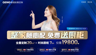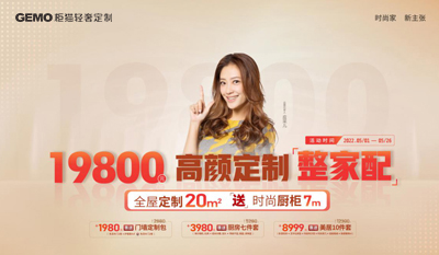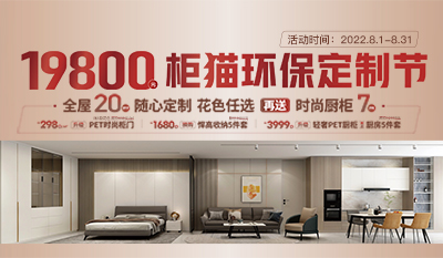 柜貓整家定制8月份活動來襲,全屋20㎡隨心定制僅需19800,2022年8月1日——8月31日,柜貓兩重福利一步省到位。