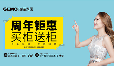 2021年6月6日——2021年6月28日,柜貓家居特別推出“周年鉅惠 買柜送柜”特別活動(dòng),超值千萬補(bǔ)貼,感恩回饋廣大消費(fèi)者。