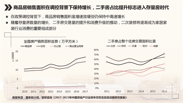 從毛坯到精裝,從成品到定制,從單品到整裝,從線下到線上,從產(chǎn)品到服務(wù),家居行業(yè)的市場(chǎng)環(huán)境發(fā)生了翻天覆地的變化。裝修業(yè)主正從70后80后變?yōu)?5后,90后。新房交房高峰已過(guò),存量房將占主導(dǎo)地位。那么,存量房時(shí)代,裝修市場(chǎng)新突破口在哪兒?