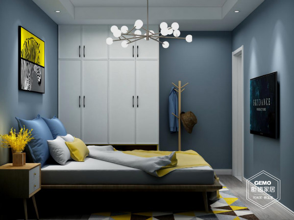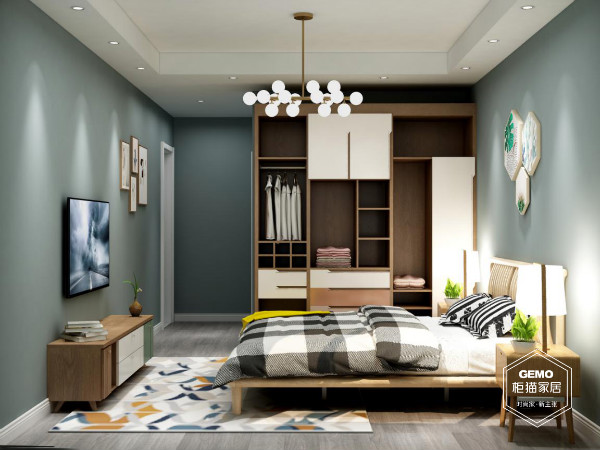 另外主臥與次臥在保持整體家居色彩風(fēng)格一致的情況下,更多的在營造家居氛圍。臥室設(shè)計(jì)上更偏向安靜感的營造,這也是為了有一個(gè)舒適的睡眠環(huán)境,畢竟臥室的主要功能就是給家人提供良好的休息空間。