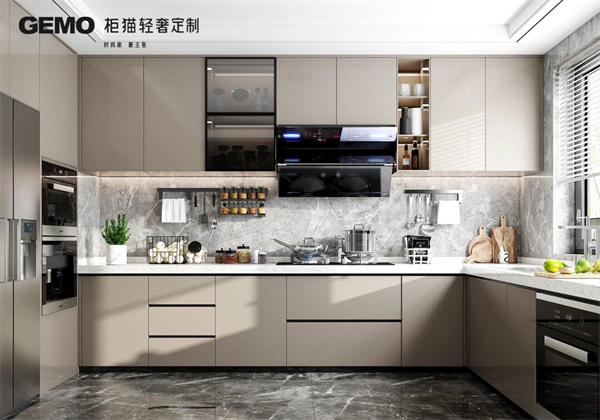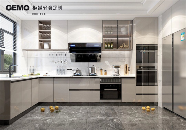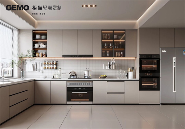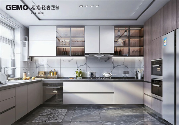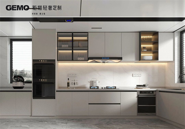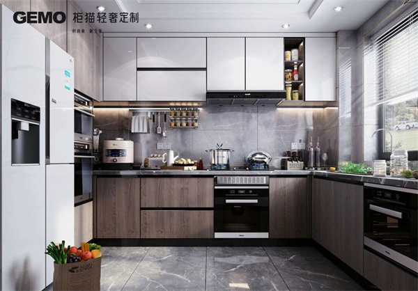 4、開(kāi)放式廚房的儲(chǔ)物空間要充足。儲(chǔ)物空間可以讓廚房更加整潔,也可以方便儲(chǔ)存各種烹飪用具。儲(chǔ)物空間可以選擇吊柜、地柜、抽屜柜等多種類型。