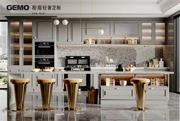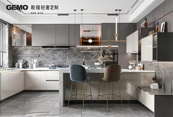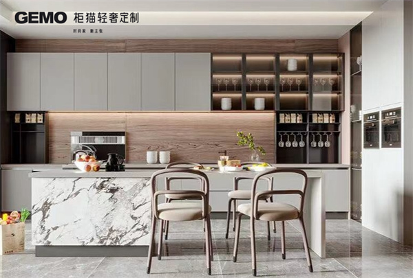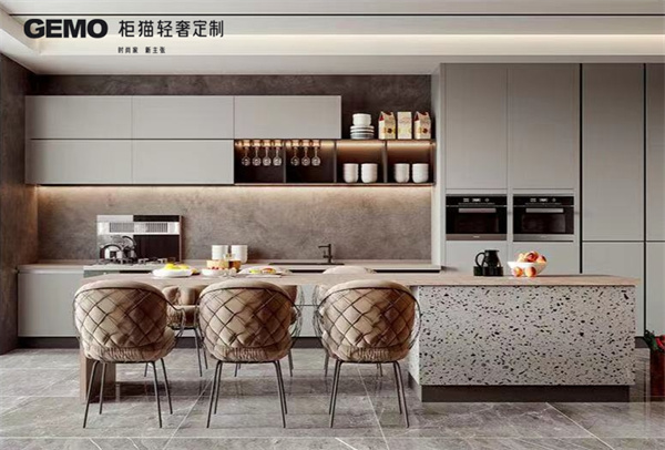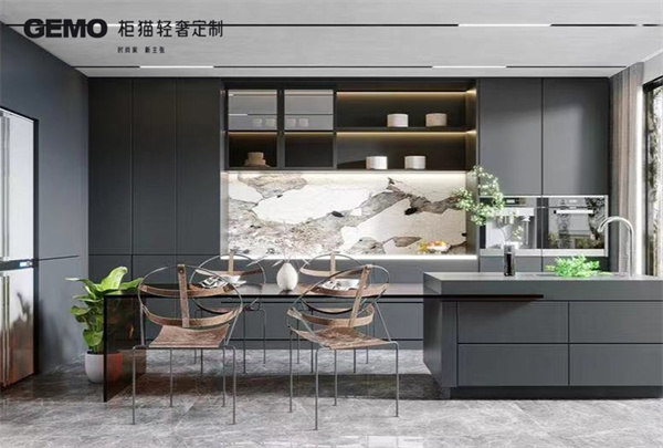 4、藝術(shù)性突出:開放式廚房設(shè)計(jì)注重整體的美觀性和藝術(shù)性??梢酝ㄟ^(guò)合理的配色和燈光的搭配,使整個(gè)廚房更具有藝術(shù)氣息。