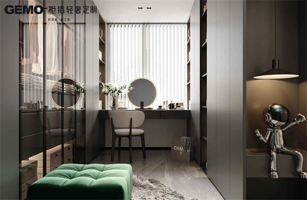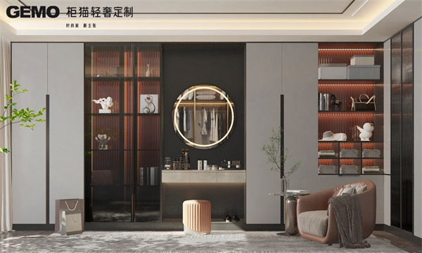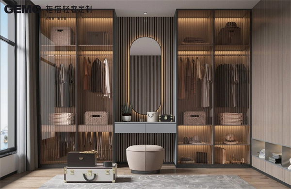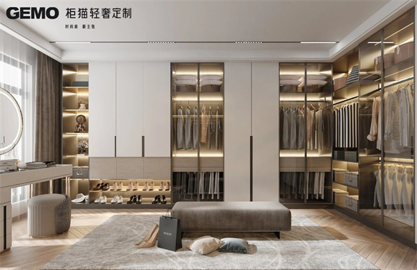 良好的照明設(shè)計(jì)可以讓衣帽間看起來(lái)更加寬敞明亮。可以考慮安裝可調(diào)光的LED燈具,以適應(yīng)不同的使用場(chǎng)景。此外,全身鏡或鏡面滑門不僅具有實(shí)用功能,還能增加空間感,讓衣帽間顯得更大。