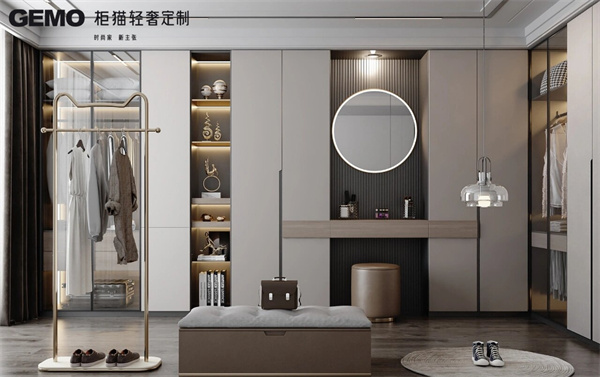 選擇多功能家具是提升衣帽間空間利用率的關(guān)鍵。例如,可調(diào)節(jié)層板的架子可以根據(jù)存放物品的高度自由調(diào)整;帶有隱藏式抽屜的換鞋凳既節(jié)省空間又提供額外的儲(chǔ)物功能;旋轉(zhuǎn)鞋架可以讓雙面的鞋子一目了然,減少占用的空間。