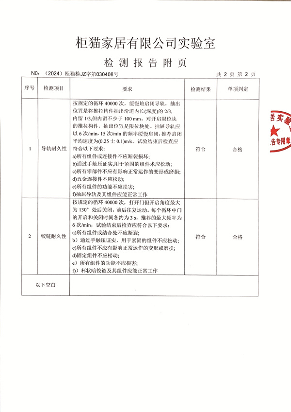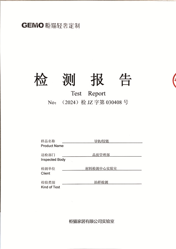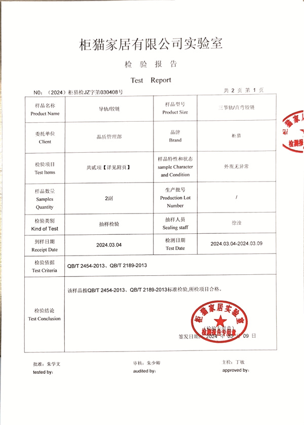 柜貓輕奢定制2024年3月導(dǎo)軌鉸鏈檢測(cè)報(bào)告