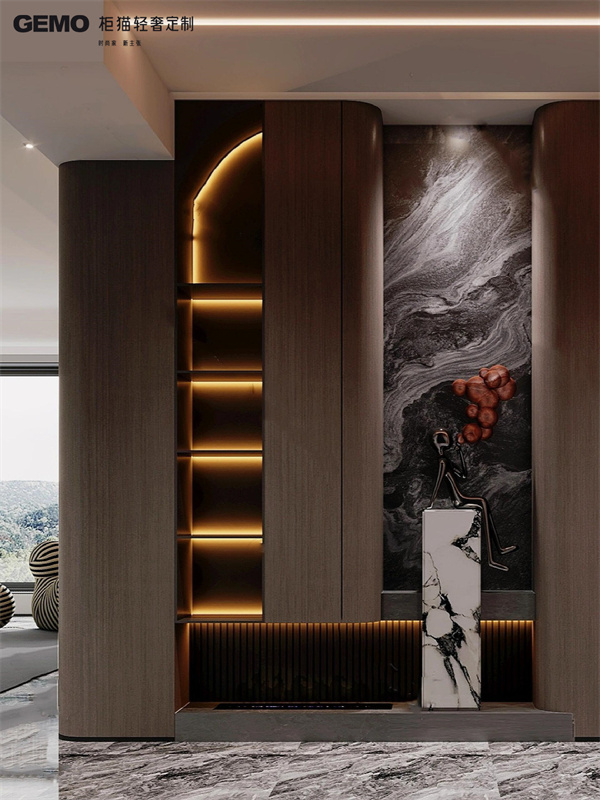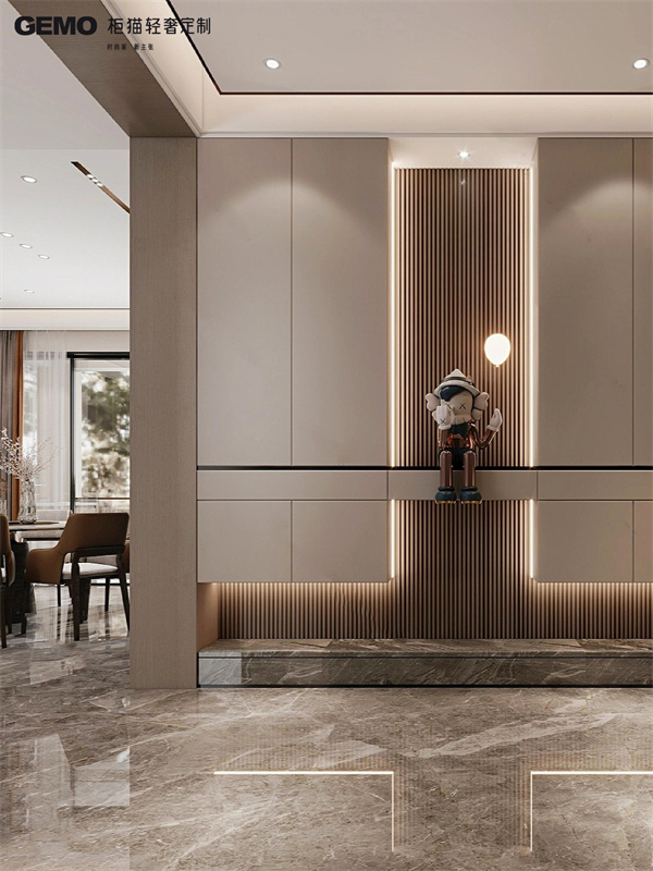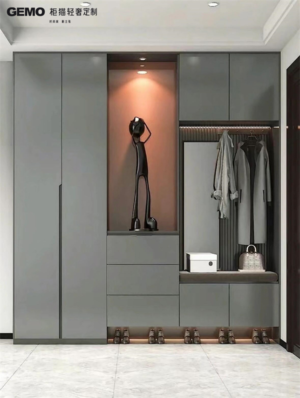 考慮到玄關(guān)柜的使用頻率較高,選擇耐用的材料至關(guān)重要。例如,可以選擇耐磨的木質(zhì)面板、不銹鋼配件和防水涂層,以確保玄關(guān)柜的耐久性。