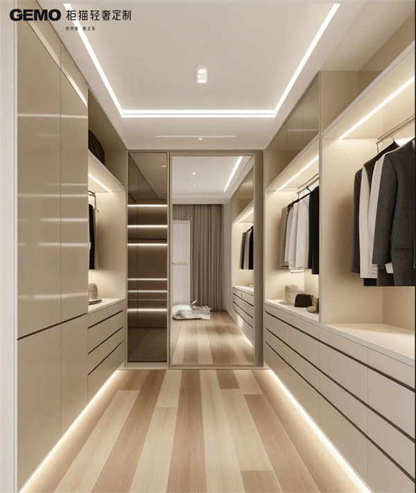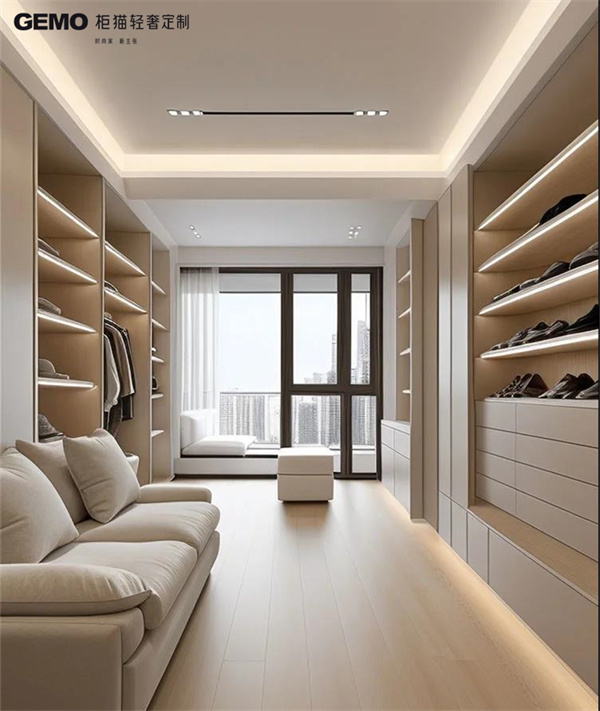 基于功能需求,設計衣帽間的內部布局??紤]采用何種形式的衣物存儲解決方案,如懸掛區(qū)、置物架、抽屜單元和鞋架等。確保每個區(qū)域都易于訪問,并且衣物分類清晰,以便快速找到所需物品。