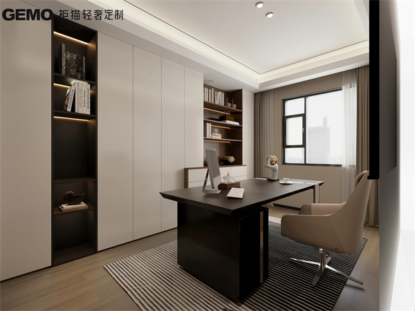 3. 定制書(shū)柜:對(duì)于喜歡閱讀或需要在家辦公的家庭來(lái)說(shuō),一個(gè)合適的書(shū)柜是必不可少的。定制書(shū)柜可以根據(jù)書(shū)籍的數(shù)量、尺寸以及個(gè)人的閱讀習(xí)慣來(lái)設(shè)計(jì),同時(shí)也可以結(jié)合裝飾品展示的需求進(jìn)行個(gè)性化定制。