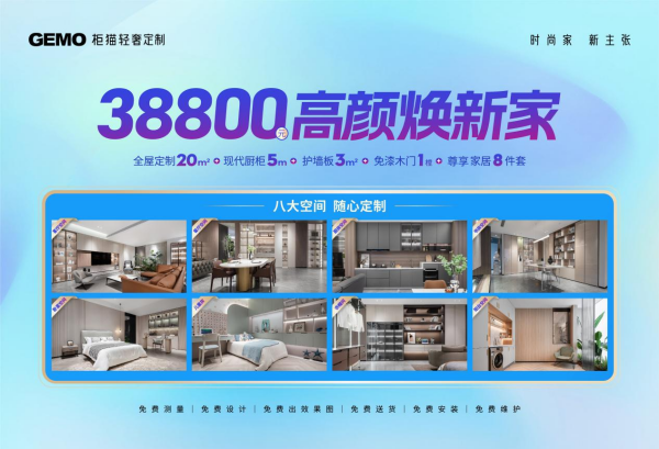 38800元煥新套餐包括了全屋20㎡柜類定制+5m現(xiàn)在櫥柜+3㎡護(hù)墻板+木門(mén)+軟裝8件套。升級(jí)激光封邊工藝,品質(zhì)高,更耐用。全屋8大空間家具定制,數(shù)百種花色任選,優(yōu)選環(huán)保易居板,更健康、更環(huán)保的基材選用,只為給消費(fèi)者定制更安心的家。