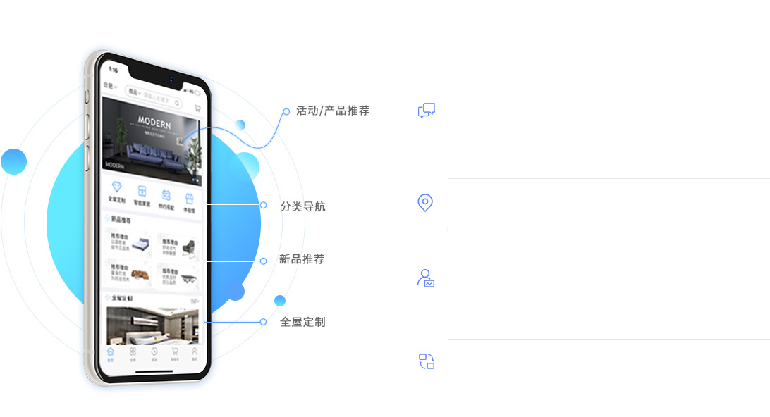 一機多用,具有導(dǎo)航、預(yù)約、購買、產(chǎn)品查找、廣告宣傳等多個功能