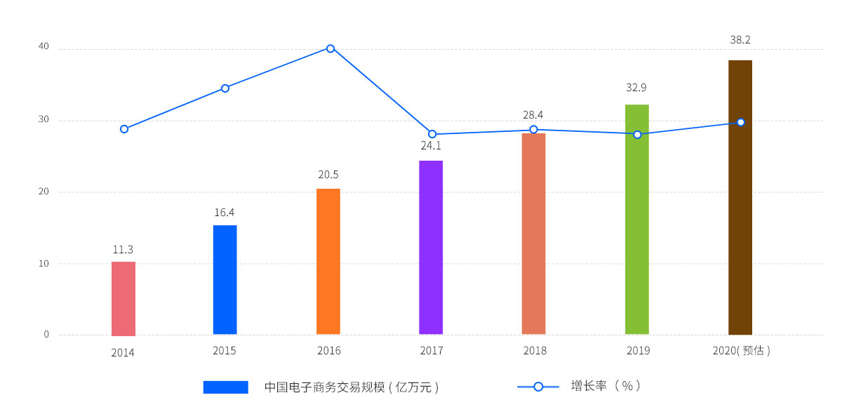 2016-2020年中國電子商務(wù)市場交易規(guī)模及增長率
